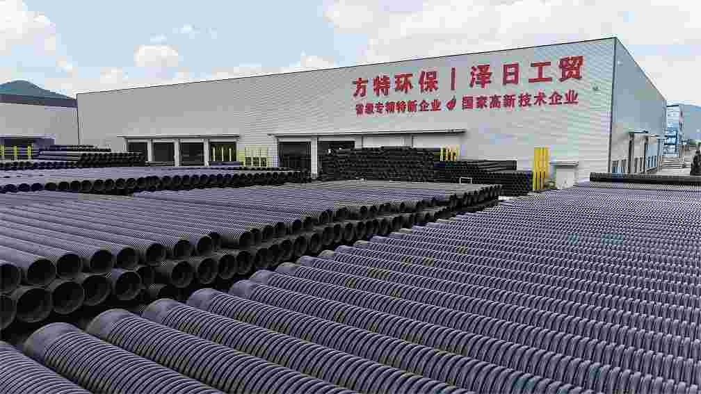 排水管生產線8條,生產品種有HDPE雙壁波紋管、鋼帶增強聚乙烯(PE)螺旋波紋管、HDPE中空壁纏繞管;